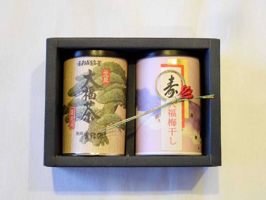 贈答用大福茶1缶 大福梅干し1缶入りギフト箱